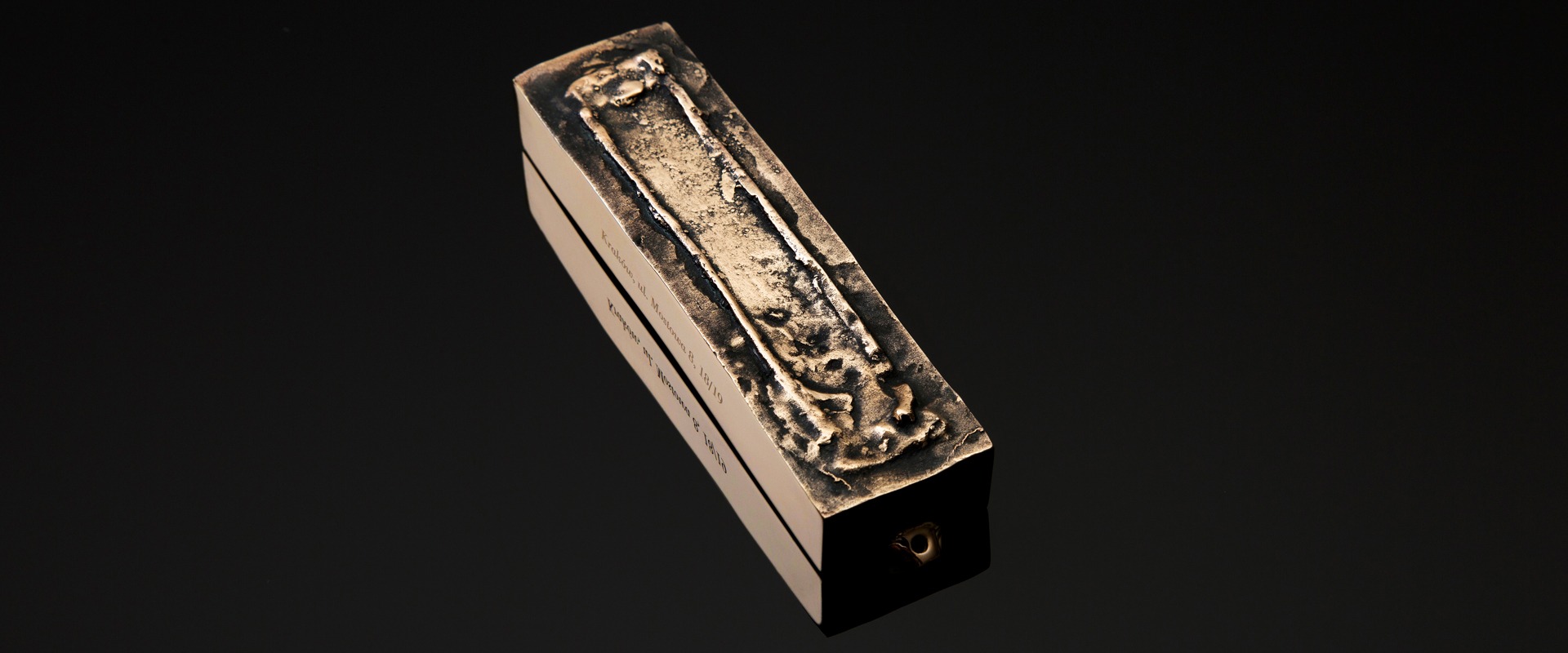 | The idea: | Bronze Mezuzah from Krakow. This mezuzah is a bronze cast of imprint of the mezuzah trace found at the old tenement at Mostowa Street in Krakow. We created a new mezuzah out of bronze to make the history tangible. Touching the mezuzah activates a link between past and present. MI POLIN – contemporary judaica brand from Poland. |