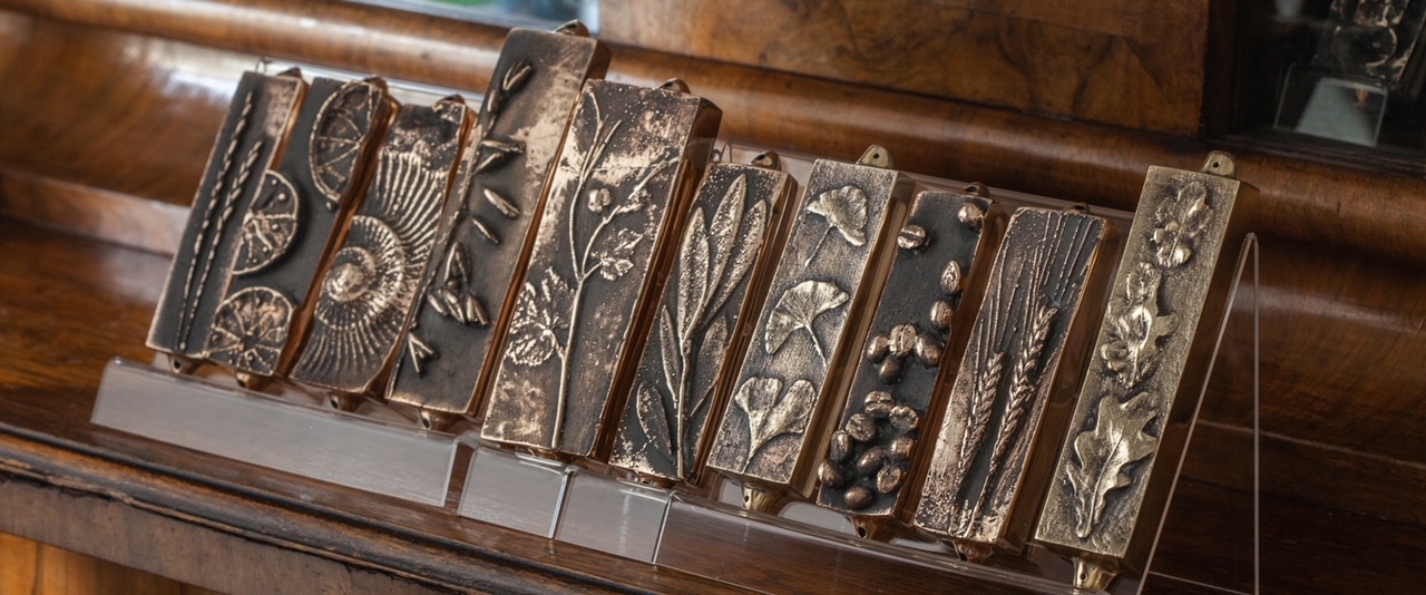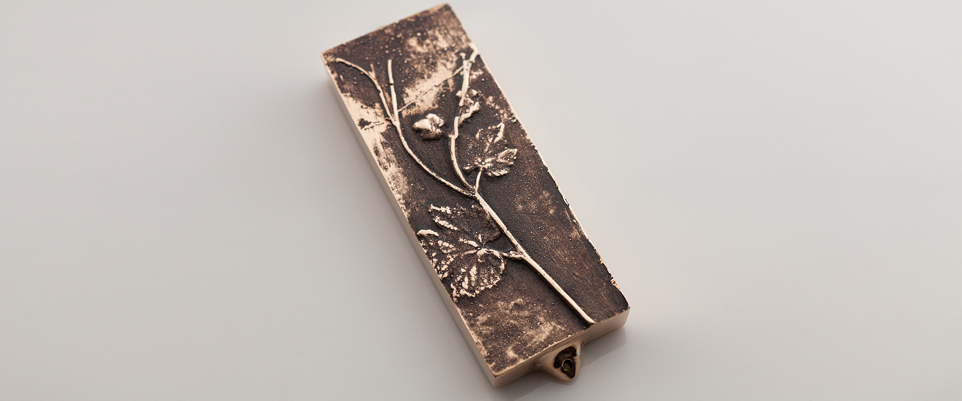 | Idea: | This new mezuzah series is a collection of nature. Some fragile plants, grass, flowers, and leaves were cast in bronze. The moment of nature was kept and became eternal. |